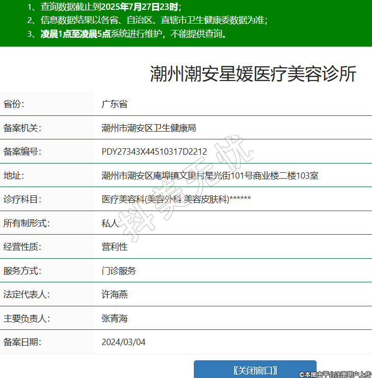 潮州潮安星媛醫(yī)療美容診所,診療科目:醫(yī)療美容科(美容外科 美容皮膚科)******