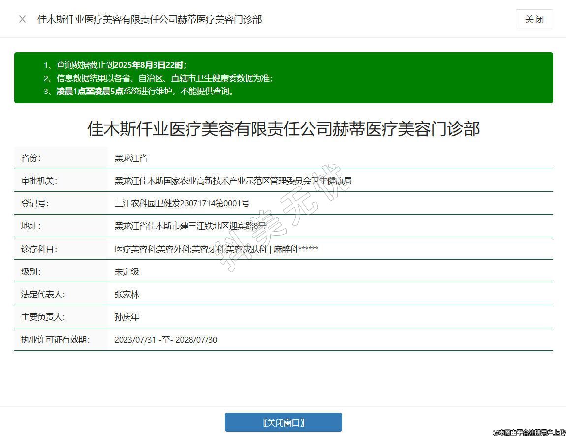 佳木斯仟業(yè)醫(yī)療美容有限責(zé)任公司赫蒂醫(yī)療美容門診部