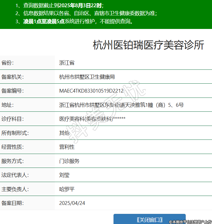杭州醫(yī)鉑瑞醫(yī)療美容診所,診療科目:醫(yī)療美容科(美容皮膚科)******
