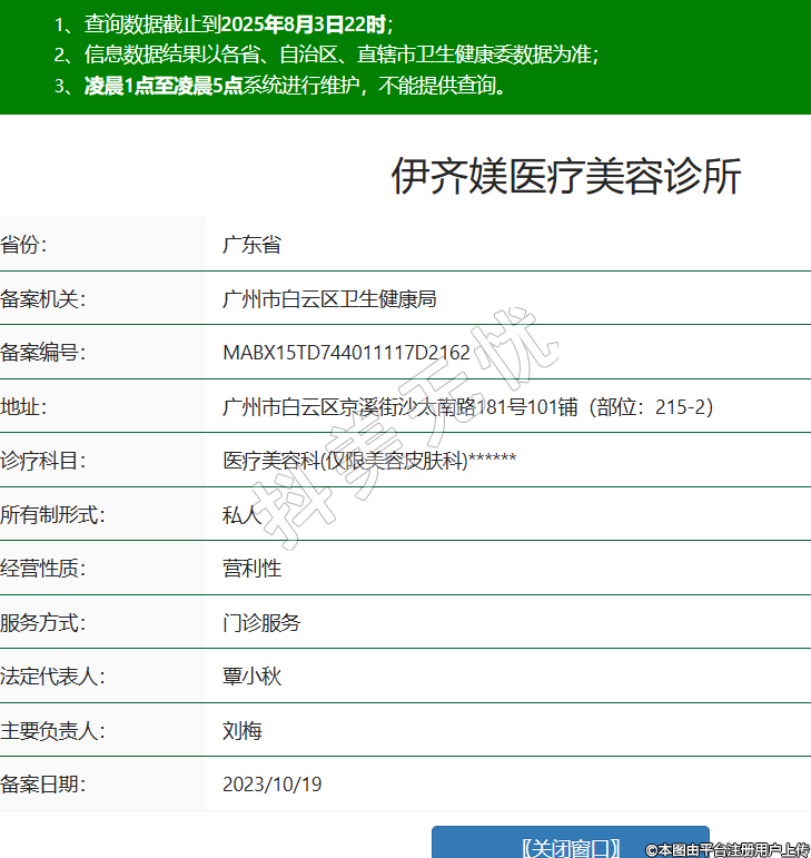 省份:廣東省備案機(jī)關(guān):廣州市白云區(qū)衛(wèi)生健康局備案編號(hào):MABX15TD744011117D2162地址:廣州市白云區(qū)京溪街沙太南路181號(hào)101鋪(部位:215-2)診療科目:醫(yī)療美容科(僅限美容皮膚科)******所有制形式:私人經(jīng)營性質(zhì):營利性服務(wù)方式:門診服務(wù)法定代表人:覃小秋主要負(fù)責(zé)人:劉梅備案日期:2023/10/19 -