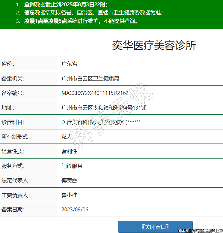 省份:廣東省備案機(jī)關(guān):廣州市白云區(qū)衛(wèi)生健康局備案編號(hào):MACCRXY2X44011115D2162地址:廣州市白云區(qū)太和鎮(zhèn)和樂路4號(hào)131鋪診療科目:醫(yī)療美容科(僅限美容皮膚科)******所有制形式:私人經(jīng)營(yíng)性質(zhì):營(yíng)利性服務(wù)方式:門診服務(wù)法定代表人:傅美霞主要負(fù)責(zé)人:魯小桂備案日期:2023/09/06 -