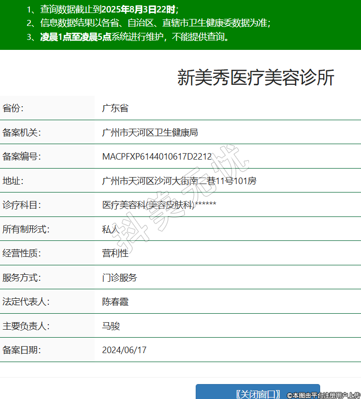 省份:廣東省備案機關:廣州市天河區(qū)衛(wèi)生健康局備案編號:MACPFXP6144010617D2212地址:廣州市天河區(qū)沙河大街南二巷11號101房診療科目:醫(yī)療美容科(美容皮膚科)******所有制形式:私人經(jīng)營性質:營利性服務方式:門診服務法定代表人:陳春霞主要負責人:馬駿備案日期:2024/06/17 -