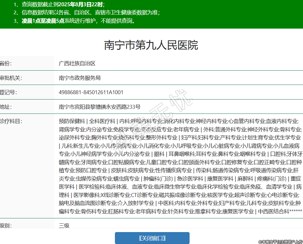 省份:廣西壯族自治區(qū)審批機關:南寧市政務服務局登記號:49886881-845012611A1001地址:南寧市賓陽縣黎塘鎮(zhèn)永安西路233號診療科目:預防保健科 | 全科醫(yī)療科 | 內(nèi)科;呼吸內(nèi)科專業(yè);消化內(nèi)科專業(yè);神經(jīng)內(nèi)科專業(yè);心血管內(nèi)科專業(yè);血液內(nèi)科專業(yè);腎病學專業(yè);內(nèi)分泌專業(yè);免疫學專業(yè);變態(tài)反應專業(yè);老年病專業(yè) | 外科;普通外科專業(yè);神經(jīng)外科專業(yè);骨科專業(yè);泌尿外科專業(yè);胸外科專業(yè);燒傷科專業(yè);整形外科專業(yè) | 婦產(chǎn)科;婦科專業(yè);產(chǎn)科專業(yè);計劃生育專業(yè);優(yōu)生學專業(yè) | 兒科;新生兒專業(yè);小兒傳染病專業(yè);小兒消化專業(yè);小兒呼吸專業(yè);小兒心臟病專業(yè);小兒腎病專業(yè);小兒血液病專業(yè);小兒神經(jīng)病學專業(yè);小兒內(nèi)分泌專業(yè) | 眼科 | 耳鼻咽喉科;耳科專業(yè);鼻科專業(yè);咽喉科專業(yè) | 口腔科;牙體牙髓病專業(yè);牙周病專業(yè);口腔粘膜病專業(yè);兒童口腔專業(yè);口腔頜面外科專業(yè);口腔修復專業(yè);口腔正畸專業(yè);口腔種植專業(yè);預防口腔專業(yè) | 皮膚科;皮膚病專業(yè);性傳播疾病專業(yè) | 傳染科;腸道傳染病專業(yè);呼吸道傳染病專業(yè);肝炎專業(yè);蟲媒傳染病專業(yè);蠕蟲病專業(yè) | 腫瘤科(門診) | 急診醫(yī)學科 | 康復醫(yī)學科 | 麻醉科 | 疼痛科(門診) | 重癥醫(yī)學科 | 醫(yī)學檢驗科;臨床體液、血液專業(yè);臨床微生物學專業(yè);臨床化學檢驗專業(yè);臨床免疫、血清學專業(yè) | 病理科 | 醫(yī)學影像科;X線診斷專業(yè);CT診斷專業(yè);磁共振成像診斷專業(yè);核醫(yī)學專業(yè);超聲診斷專業(yè);心電診斷專業(yè);腦電及腦血流圖診斷專業(yè);介入放射學專業(yè) | 中醫(yī)科;內(nèi)科專業(yè);外科專業(yè);婦產(chǎn)科專業(yè);兒科專業(yè);皮膚科專業(yè);腫瘤科專業(yè);骨傷科專業(yè);肛腸科專業(yè);老年病科專業(yè);針灸科專業(yè);推拿科專業(yè);康復醫(yī)學專業(yè) | 中西醫(yī)結合科******級別:三級法定代表人:馬興才主要負責人:馬興才執(zhí)業(yè)許可證有效期:2025/07/16 -至- 2038/11/19 -