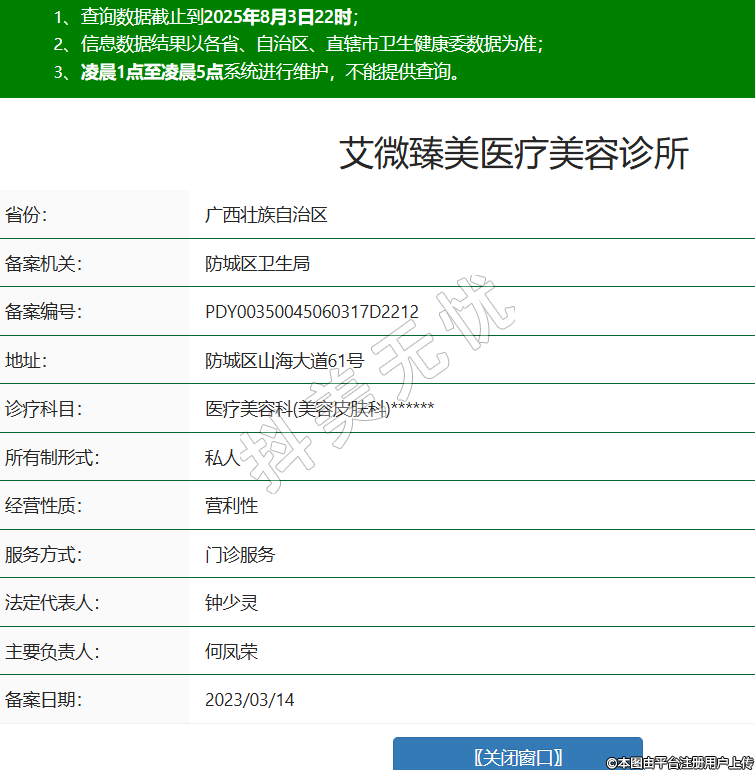 省份:廣西壯族自治區(qū)備案機(jī)關(guān):防城區(qū)衛(wèi)生局備案編號:PDY00350045060317D2212地址:防城區(qū)山海大道61號診療科目:醫(yī)療美容科(美容皮膚科)******所有制形式:私人經(jīng)營性質(zhì):營利性服務(wù)方式:門診服務(wù)法定代表人:鐘少靈主要負(fù)責(zé)人:何鳳榮備案日期:2023/03/14 -