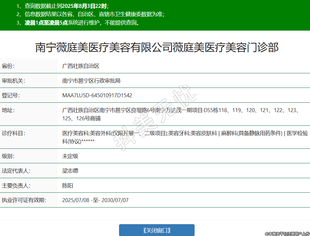 南寧薇庭美醫(yī)療美容有限公司薇庭美醫(yī)療美容門診部