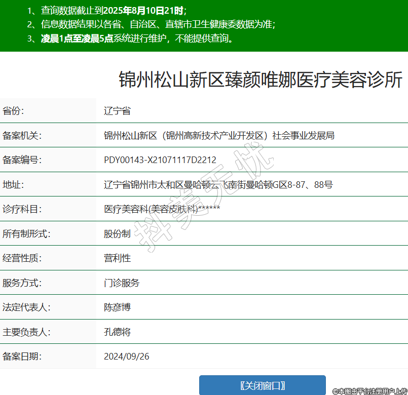 錦州松山新區(qū)臻顏唯娜醫(yī)療美容診所,診療科目:醫(yī)療美容科(美容皮膚科)******