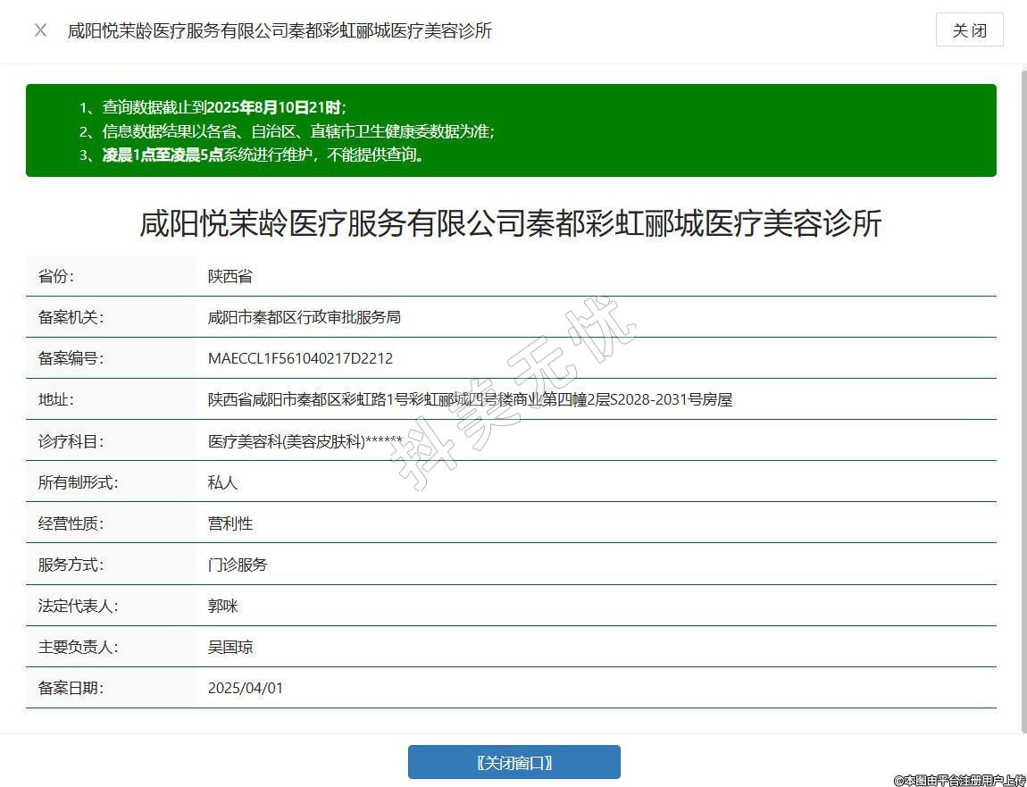 咸陽悅茉齡醫(yī)療服務(wù)有限公司秦都彩虹酈城醫(yī)療美容診所