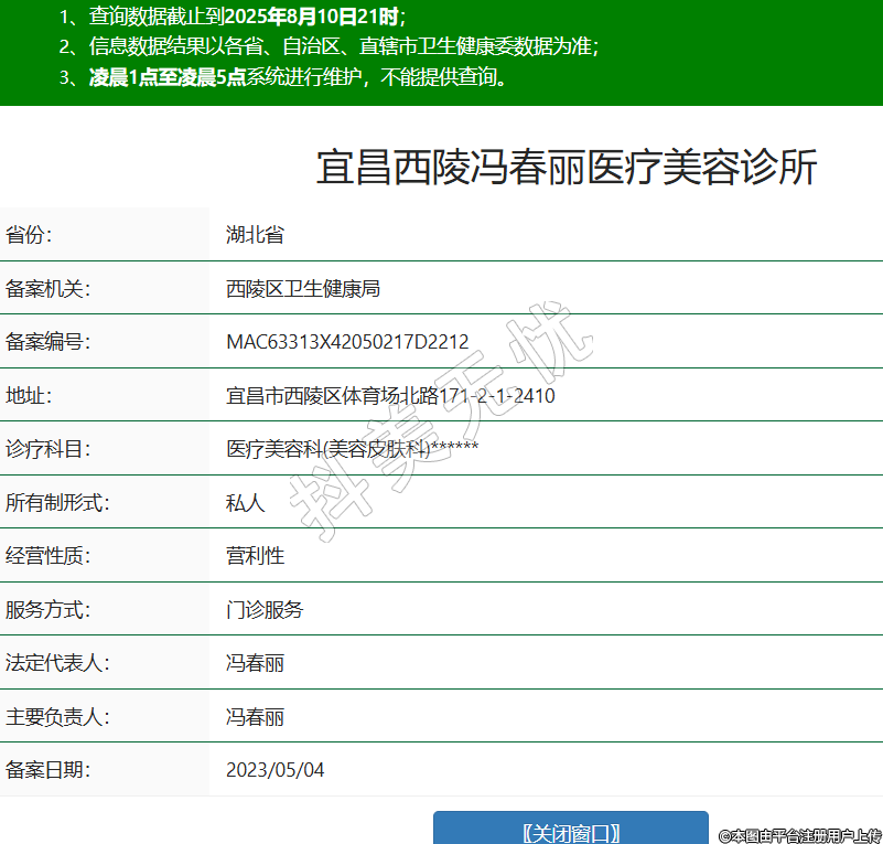 宜昌西陵馮春麗醫(yī)療美容診所,診療科目:醫(yī)療美容科(美容皮膚科)******