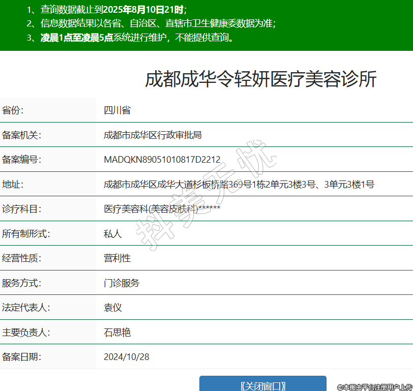 成都成華令輕妍醫(yī)療美容診所,診療科目:醫(yī)療美容科(美容皮膚科)******