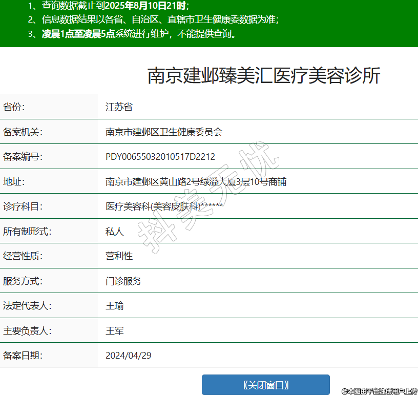 南京建鄴臻美匯醫(yī)療美容診所,診療科目:醫(yī)療美容科(美容皮膚科)******
