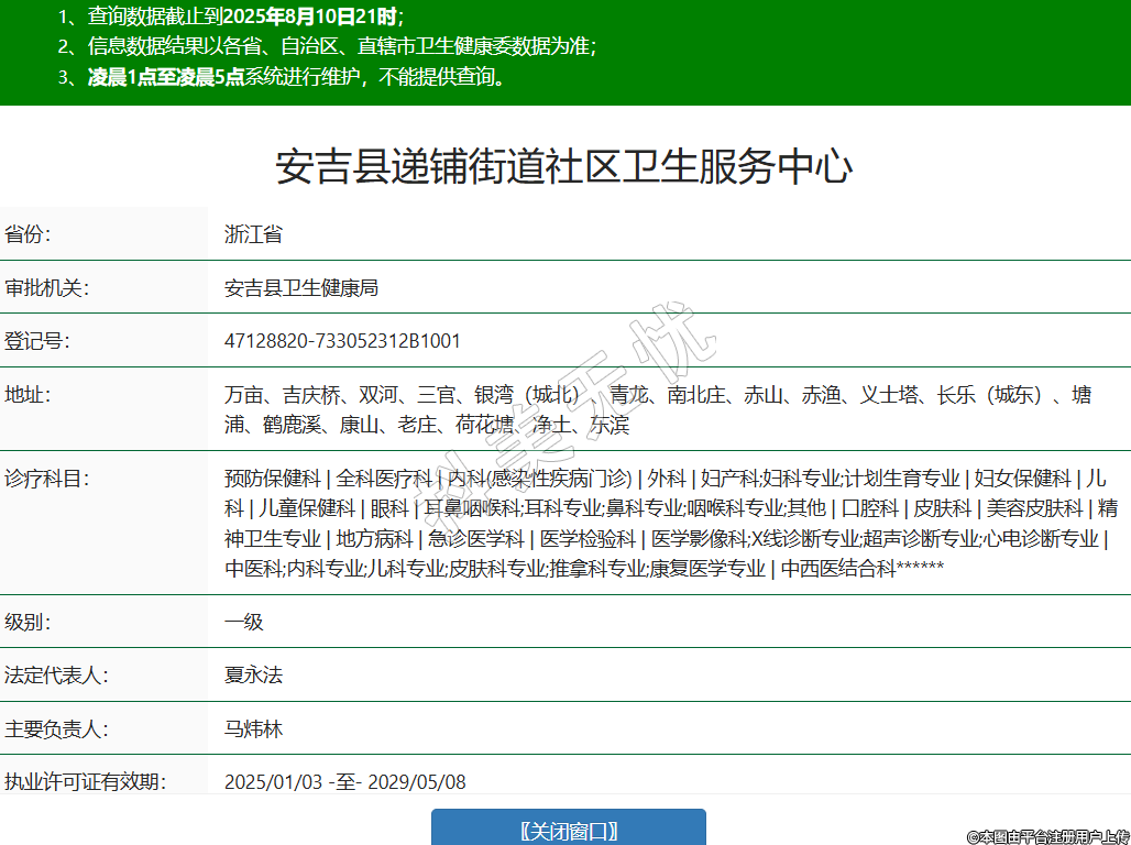 省份:浙江省審批機(jī)關(guān):安吉縣衛(wèi)生健康局登記號(hào):47128820-733052312B1001地址:萬(wàn)畝、吉慶橋、雙河、三官、銀灣(城北)、青龍、南北莊、赤山、赤漁、義士塔、長(zhǎng)樂(lè)(城東)、塘浦、鶴鹿溪、康山、老莊、荷花塘、凈土、東濱診療科目:預(yù)防保健科 | 全科醫(yī)療科 | 內(nèi)科(感染性疾病門診) | 外科 | 婦產(chǎn)科;婦科專業(yè);計(jì)劃生育專業(yè) | 婦女保健科 | 兒科 | 兒童保健科 | 眼科 | 耳鼻咽喉科;耳科專業(yè);鼻科專業(yè);咽喉科專業(yè);其他 | 口腔科 | 皮膚科 | 美容皮膚科 | 精神衛(wèi)生專業(yè) | 地方病科 | 急診醫(yī)學(xué)科 | 醫(yī)學(xué)檢驗(yàn)科 | 醫(yī)學(xué)影像科;X線診斷專業(yè);超聲診斷專業(yè);心電診斷專業(yè) | 中醫(yī)科;內(nèi)科專業(yè);兒科專業(yè);皮膚科專業(yè);推拿科專業(yè);康復(fù)醫(yī)學(xué)專業(yè) | 中西醫(yī)結(jié)合科******級(jí)別:一級(jí)法定代表人:夏永法主要負(fù)責(zé)人:馬煒林執(zhí)業(yè)許可證有效期:2025/01/03 -至- 2029/05/08 -