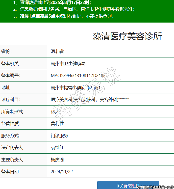 省份:河北省備案機關(guān):霸州市衛(wèi)生健康局備案編號:MACKG9F6313108117D2182地址:霸州市提香小鎮(zhèn)底商2-商1診療科目:醫(yī)療美容科(美容皮膚科,美容外科)******所有制形式:私人經(jīng)營性質(zhì):營利性服務(wù)方式:門診服務(wù)法定代表人:袁繼紅主要負責(zé)人:楊慶渝備案日期:2024/11/22 -
