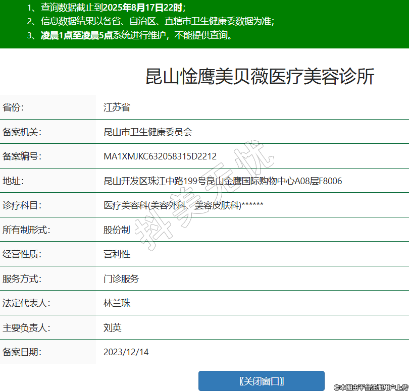 昆山惍鷹美貝薇醫(yī)療美容診所,診療科目:醫(yī)療美容科(美容外科、美容皮膚科)******