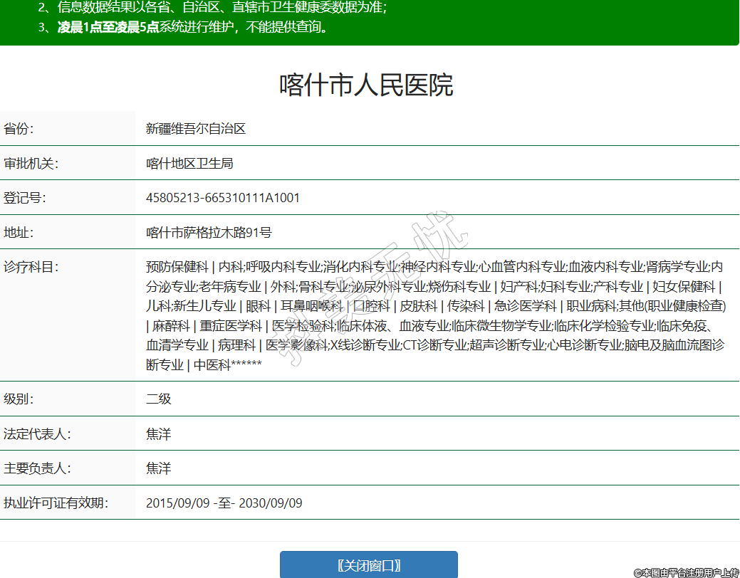 省份:新疆維吾爾自治區(qū)審批機關(guān):喀什地區(qū)衛(wèi)生局登記號:45805213-665310111A1001地址:喀什市薩格拉木路91號診療科目:預(yù)防保健科 | 內(nèi)科;呼吸內(nèi)科專業(yè);消化內(nèi)科專業(yè);神經(jīng)內(nèi)科專業(yè);心血管內(nèi)科專業(yè);血液內(nèi)科專業(yè);腎病學(xué)專業(yè);內(nèi)分泌專業(yè);老年病專業(yè) | 外科;骨科專業(yè);泌尿外科專業(yè);燒傷科專業(yè) | 婦產(chǎn)科;婦科專業(yè);產(chǎn)科專業(yè) | 婦女保健科 | 兒科;新生兒專業(yè) | 眼科 | 耳鼻咽喉科 | 口腔科 | 皮膚科 | 傳染科 | 急診醫(yī)學(xué)科 | 職業(yè)病科;其他(職業(yè)健康檢查) | 麻醉科 | 重癥醫(yī)學(xué)科 | 醫(yī)學(xué)檢驗科;臨床體液、血液專業(yè);臨床微生物學(xué)專業(yè);臨床化學(xué)檢驗專業(yè);臨床免疫、血清學(xué)專業(yè) | 病理科 | 醫(yī)學(xué)影像科;X線診斷專業(yè);CT診斷專業(yè);超聲診斷專業(yè);心電診斷專業(yè);腦電及腦血流圖診斷專業(yè) | 中醫(yī)科******級別:二級法定代表人:焦洋主要負(fù)責(zé)人:焦洋執(zhí)業(yè)許可證有效期:2015/09/09 -至- 2030/09/09 -