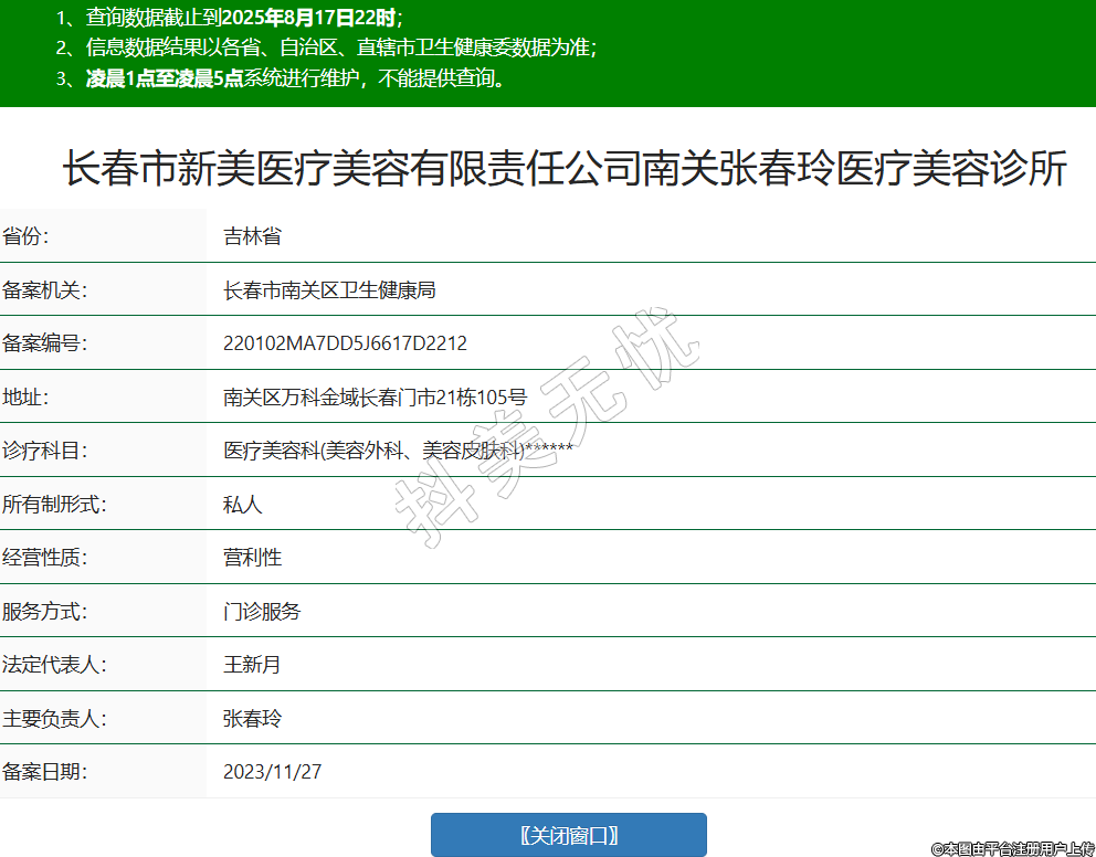 長春市新美醫(yī)療美容有限責(zé)任公司南關(guān)張春玲醫(yī)療美容診所