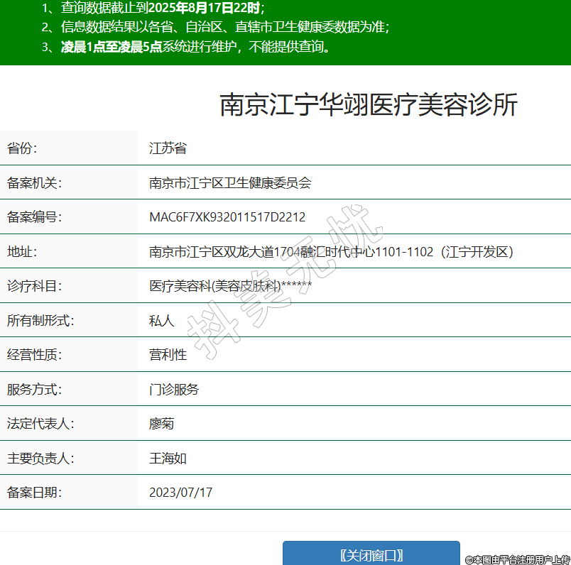 南京江寧華翊醫(yī)療美容診所,診療科目:醫(yī)療美容科(美容皮膚科)******