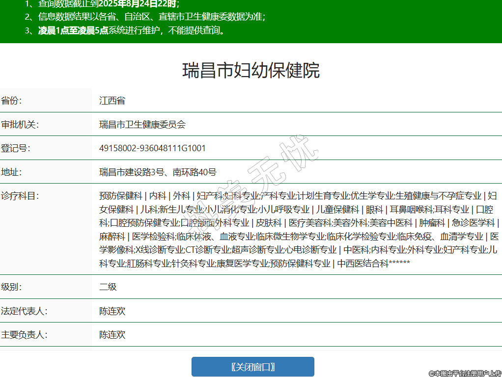 瑞昌市婦幼保健院,診療科目:預(yù)防保健科 | 內(nèi)科 | 外科 | 婦產(chǎn)科 | 婦女保健科 | 兒科;新生兒專業(yè);小兒消化專業(yè);小兒呼吸專業(yè) | 兒童保健科 | 眼科 | 耳鼻咽喉科| 口腔科 | 皮膚科 | 醫(yī)療美容科;美容外科;美容中醫(yī)科 | 腫瘤科 | 急診醫(yī)學(xué)科 | 麻醉科 | 醫(yī)學(xué)檢驗科 | 醫(yī)學(xué)影像科 | 中醫(yī)科;內(nèi)科專業(yè);外科專業(yè);婦產(chǎn)科專業(yè);兒科專業(yè);肛腸科專業(yè);針灸科專業(yè);康復(fù)醫(yī)學(xué)專業(yè);預(yù)防保健科專業(yè) | 中西醫(yī)結(jié)合科******