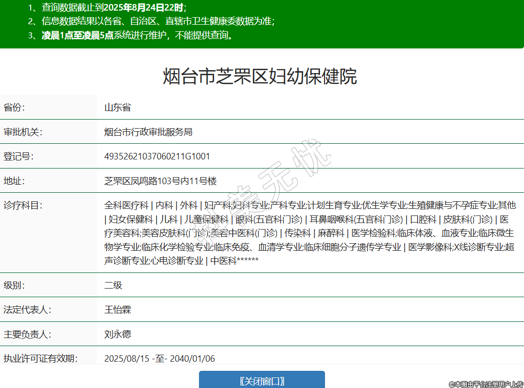 省份:山東省審批機(jī)關(guān):煙臺(tái)市行政審批服務(wù)局登記號(hào):49352621037060211G1001地址:芝罘區(qū)鳳鳴路103號(hào)內(nèi)11號(hào)樓診療科目:全科醫(yī)療科 | 內(nèi)科 | 外科 | 婦產(chǎn)科;婦科專業(yè);產(chǎn)科專業(yè);計(jì)劃生育專業(yè);優(yōu)生學(xué)專業(yè);生殖健康與不孕癥專業(yè);其他 | 婦女保健科 | 兒科 | 兒童保健科 | 眼科(五官科門診) | 耳鼻咽喉科(五官科門診) | 口腔科 | 皮膚科(門診) | 醫(yī)療美容科;美容皮膚科(門診);美容中醫(yī)科(門診) | 傳染科 | 麻醉科 | 醫(yī)學(xué)檢驗(yàn)科;臨床體液、血液專業(yè);臨床微生物學(xué)專業(yè);臨床化學(xué)檢驗(yàn)專業(yè);臨床免疫、血清學(xué)專業(yè);臨床細(xì)胞分子遺傳學(xué)專業(yè) | 醫(yī)學(xué)影像科;X線診斷專業(yè);超聲診斷專業(yè);心電診斷專業(yè) | 中醫(yī)科******級(jí)別:二級(jí)法定代表人:王怡霖主要負(fù)責(zé)人:劉永德執(zhí)業(yè)許可證有效期:2025/08/15 -至- 2040/01/06 -