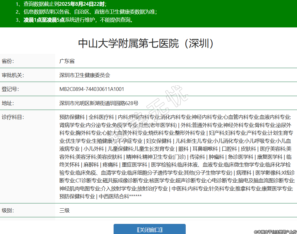 省份:廣東省審批機關(guān):深圳市衛(wèi)生健康委員會登記號:MB2C0894-744030611A1001地址:深圳市光明區(qū)新湖街道圳園路628號診療科目:預(yù)防保健科 | 全科醫(yī)療科 | 內(nèi)科;呼吸內(nèi)科專業(yè);消化內(nèi)科專業(yè);神經(jīng)內(nèi)科專業(yè);心血管內(nèi)科專業(yè);血液內(nèi)科專業(yè);腎病學(xué)專業(yè);內(nèi)分泌專業(yè);免疫學(xué)專業(yè);其他(老年醫(yī)學(xué)科) | 外科;普通外科專業(yè);神經(jīng)外科專業(yè);骨科專業(yè);泌尿外科專業(yè);胸外科專業(yè);心臟大血管外科專業(yè);燒傷科專業(yè);整形外科專業(yè) | 婦產(chǎn)科;婦科專業(yè);產(chǎn)科專業(yè);計劃生育專業(yè);優(yōu)生學(xué)專業(yè);生殖健康與不孕癥專業(yè) | 婦女保健科 | 兒科;新生兒專業(yè);小兒消化專業(yè);小兒呼吸專業(yè);小兒血液病專業(yè) | 小兒外科 | 兒童保健科;兒童生長發(fā)育專業(yè) | 眼科 | 耳鼻咽喉科 | 口腔科 | 皮膚科 | 醫(yī)療美容科;美容外科;美容牙科;美容皮膚科 | 精神科;精神衛(wèi)生專業(yè)(門診) | 傳染科 | 腫瘤科 | 急診醫(yī)學(xué)科 | 康復(fù)醫(yī)學(xué)科 | 臨終關(guān)懷科 | 麻醉科 | 疼痛科 | 重癥醫(yī)學(xué)科 | 醫(yī)學(xué)檢驗科;臨床體液、血液專業(yè);臨床微生物學(xué)專業(yè);臨床化學(xué)檢驗專業(yè);臨床免疫、血清學(xué)專業(yè);臨床細(xì)胞分子遺傳學(xué)專業(yè);其他(分子生物學(xué)專業(yè)) | 病理科 | 醫(yī)學(xué)影像科;X線診斷專業(yè);CT診斷專業(yè);磁共振成像診斷專業(yè);核醫(yī)學(xué)專業(yè);超聲診斷專業(yè);心電診斷專業(yè);腦電及腦血流圖診斷專業(yè);神經(jīng)肌肉電圖專業(yè);介入放射學(xué)專業(yè);放射治療專業(yè) | 中醫(yī)科;內(nèi)科專業(yè);針灸科專業(yè);推拿科專業(yè);康復(fù)醫(yī)學(xué)專業(yè);預(yù)防保健科專業(yè) | 中西醫(yī)結(jié)合科******級別:三級法定代表人:何裕隆主要負(fù)責(zé)人:***執(zhí)業(yè)許可證有效期:2018/04/19 -至- 2033/04/18 -