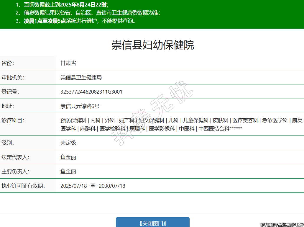 崇信縣婦幼保健院,診療科目:預(yù)防保健科 | 內(nèi)科 | 外科 | 婦產(chǎn)科 | 婦女保健科 | 兒科 | 兒童保健科 | 皮膚科 | 醫(yī)療美容科 | 急診醫(yī)學(xué)科 | 康復(fù)醫(yī)學(xué)科 | 麻醉科 | 醫(yī)學(xué)檢驗(yàn)科 | 病理科 | 醫(yī)學(xué)影像科 | 中醫(yī)科 | 中西醫(yī)結(jié)合科******