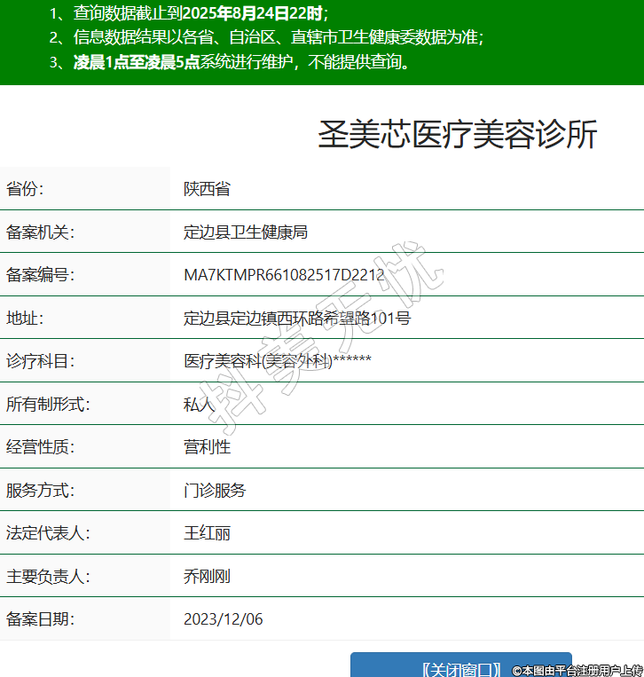 省份:陜西省備案機關:定邊縣衛(wèi)生健康局備案編號:MA7KTMPR661082517D2212地址:定邊縣定邊鎮(zhèn)西環(huán)路希望路101號診療科目:醫(yī)療美容科(美容外科)******所有制形式:私人經(jīng)營性質:營利性服務方式:門診服務法定代表人:王紅麗主要負責人:喬剛剛備案日期:2023/12/06 -