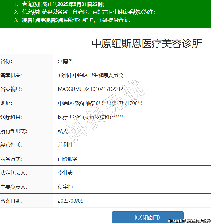 省份:河南省備案機關(guān):鄭州市中原區(qū)衛(wèi)生健康委員會備案編號:MA9GUMJTX41010217D2212地址:中原區(qū)棉紡西路36號1號樓17層1706號診療科目:醫(yī)療美容科(美容皮膚科)******所有制形式:私人經(jīng)營性質(zhì):營利性服務(wù)方式:門診服務(wù)法定代表人:李壯志主要負責(zé)人:侯宇恒備案日期:2023/08/09 -