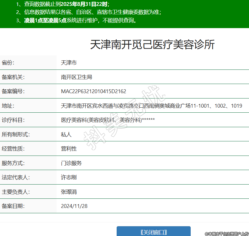 省份:天津市備案機關(guān):南開區(qū)衛(wèi)生局備案編號:MAC22P63212010415D2162地址:天津市南開區(qū)賓水西道與凌賓路交口西南側(cè)奧城商業(yè)廣場11-1001、1002、1019診療科目:醫(yī)療美容科(美容皮膚科、美容外科)******所有制形式:私人經(jīng)營性質(zhì):營利性服務(wù)方式:門診服務(wù)法定代表人:許志剛主要負責人:張瓈涓備案日期:2024/11/28 -