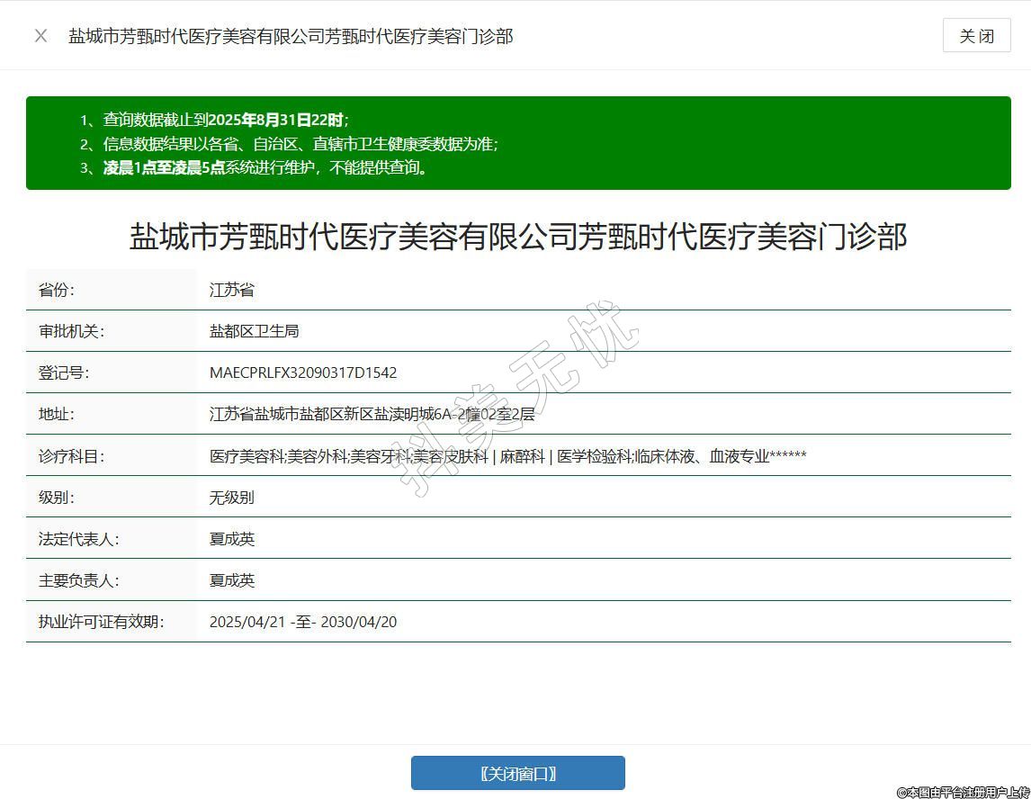 鹽城市芳甄時(shí)代醫(yī)療美容有限公司芳甄時(shí)代醫(yī)療美容門(mén)診部