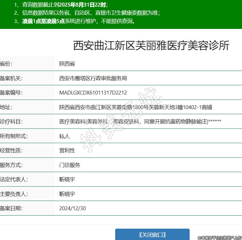 西安曲江新區(qū)芙麗雅醫(yī)療美容診所,診療科目:醫(yī)療美容科(美容外科、美容皮膚科,同意開展抗菌藥物靜脈輸注)******