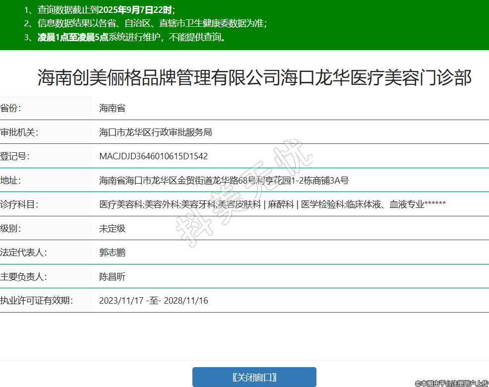 海南創(chuàng)美儷格品牌管理有限公司??邶埲A醫(yī)療美容門診部