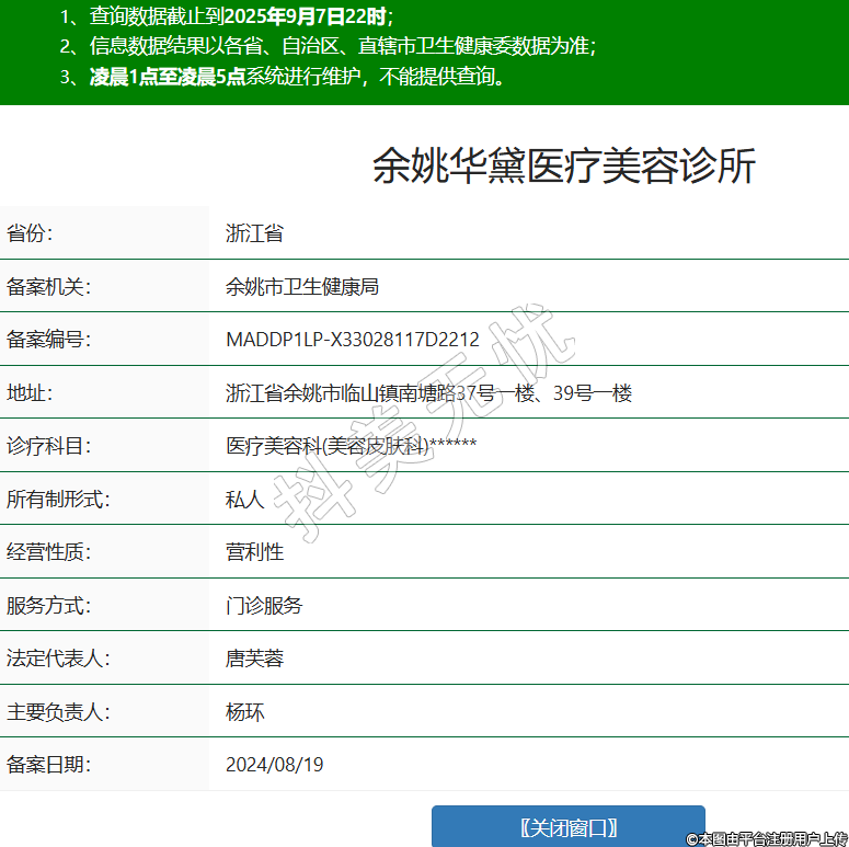 余姚華黛醫(yī)療美容診所,診療科目:醫(yī)療美容科(美容皮膚科)******