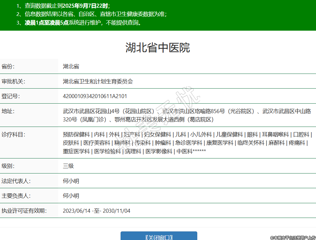 省份:湖北省審批機(jī)關(guān):湖北省衛(wèi)生和計(jì)劃生育委員會(huì)登記號:42000109342010611A2101地址:武漢市武昌區(qū)花園山4號(花園山院區(qū))、武漢市洪山區(qū)珞喻路856號(光谷院區(qū))、武漢市武昌區(qū)中山路320號(鳳凰門診)、鄂州葛店開發(fā)區(qū)發(fā)展大道西側(cè)(葛店院區(qū))診療科目:預(yù)防保健科 | 內(nèi)科 | 外科 | 婦產(chǎn)科 | 婦女保健科 | 兒科 | 小兒外科 | 兒童保健科 | 眼科 | 耳鼻咽喉科 | 口腔科 | 皮膚科 | 醫(yī)療美容科 | 精神科 | 傳染科 | 腫瘤科 | 急診醫(yī)學(xué)科 | 康復(fù)醫(yī)學(xué)科 | 臨終關(guān)懷科 | 麻醉科 | 疼痛科 | 重癥醫(yī)學(xué)科 | 醫(yī)學(xué)檢驗(yàn)科 | 病理科 | 醫(yī)學(xué)影像科 | 中醫(yī)科******級別:三級法定代表人:何小明主要負(fù)責(zé)人:何小明執(zhí)業(yè)許可證有效期:2023/06/14 -至- 2030/11/04 -