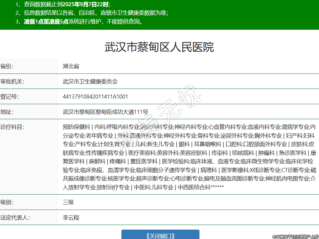 省份:湖北省審批機(jī)關(guān):武漢市衛(wèi)生健康委員會登記號:44137910842011411A1001地址:武漢市蔡甸區(qū)蔡甸街成功大道111號診療科目:預(yù)防保健科 | 內(nèi)科;呼吸內(nèi)科專業(yè);消化內(nèi)科專業(yè);神經(jīng)內(nèi)科專業(yè);心血管內(nèi)科專業(yè);血液內(nèi)科專業(yè);腎病學(xué)專業(yè);內(nèi)分泌專業(yè);老年病專業(yè) | 外科;普通外科專業(yè);神經(jīng)外科專業(yè);骨科專業(yè);泌尿外科專業(yè);胸外科專業(yè) | 婦產(chǎn)科;婦科專業(yè);產(chǎn)科專業(yè);計(jì)劃生育專業(yè) | 兒科;新生兒專業(yè) | 眼科 | 耳鼻咽喉科 | 口腔科;口腔頜面外科專業(yè) | 皮膚科;皮膚病專業(yè);性傳播疾病專業(yè) | 醫(yī)療美容科;美容外科;美容皮膚科 | 傳染科 | 結(jié)核病科 | 腫瘤科 | 急診醫(yī)學(xué)科 | 康復(fù)醫(yī)學(xué)科 | 麻醉科 | 疼痛科 | 重癥醫(yī)學(xué)科 | 醫(yī)學(xué)檢驗(yàn)科;臨床體液、血液專業(yè);臨床微生物學(xué)專業(yè);臨床化學(xué)檢驗(yàn)專業(yè);臨床免疫、血清學(xué)專業(yè);臨床細(xì)胞分子遺傳學(xué)專業(yè) | 病理科 | 醫(yī)學(xué)影像科;X線診斷專業(yè);CT診斷專業(yè);磁共振成像診斷專業(yè);核醫(yī)學(xué)專業(yè);超聲診斷專業(yè);心電診斷專業(yè);腦電及腦血流圖診斷專業(yè);神經(jīng)肌肉電圖專業(yè);介入放射學(xué)專業(yè);放射治療專業(yè) | 中醫(yī)科;兒科專業(yè) | 中西醫(yī)結(jié)合科******級別:三級法定代表人:李云程主要負(fù)責(zé)人:李云程執(zhí)業(yè)許可證有效期:2016/06/23 -至- 2031/06/22 -