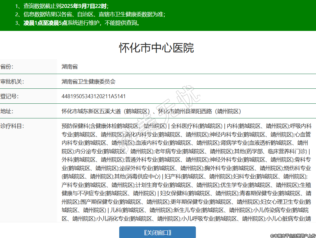 省份:湖南省審批機關(guān):湖南省衛(wèi)生健康委員會登記號:44819505343120211A5141地址:懷化市城東新區(qū)五溪大道(鶴城院區(qū))、懷化市靖州縣渠陽西路(靖州院區(qū))診療科目:預(yù)防保健科(含健康體檢鶴城院區(qū)、靖州院區(qū)) | 全科醫(yī)療科(鶴城院區(qū)) | 內(nèi)科(鶴城院區(qū)、靖州院區(qū));呼吸內(nèi)科專業(yè)(鶴城院區(qū)、靖州院區(qū));消化內(nèi)科專業(yè)(鶴城院區(qū)、靖州院區(qū));神經(jīng)內(nèi)科專業(yè)(鶴城院區(qū)、靖州院區(qū));心血管內(nèi)科專業(yè)(鶴城院區(qū)、靖州院區(qū));血液內(nèi)科專業(yè)(鶴城院區(qū)、靖州院區(qū));腎病學(xué)專業(yè)(血液透析鶴城院區(qū)、靖州院區(qū));內(nèi)分泌專業(yè)(鶴城院區(qū)、靖州院區(qū));老年病專業(yè)(鶴城院區(qū)、靖州院區(qū));其他(藥學(xué)部、臨床營養(yǎng)科門診) | 外科(鶴城院區(qū)、靖州院區(qū));普通外科專業(yè)(鶴城院區(qū)、靖州院區(qū));神經(jīng)外科專業(yè)(鶴城院區(qū)、靖州院區(qū));骨科專業(yè)(鶴城院區(qū)、靖州院區(qū));泌尿外科專業(yè)(鶴城院區(qū)、靖州院區(qū));胸外科專業(yè)(鶴城院區(qū)、靖州院區(qū));燒傷科專業(yè)(鶴城院區(qū)、靖州院區(qū));其他(消毒供應(yīng)中心) | 婦產(chǎn)科(鶴城院區(qū)、靖州院區(qū));婦科專業(yè)(鶴城院區(qū)、靖州院區(qū));產(chǎn)科專業(yè)(鶴城院區(qū)、靖州院區(qū));計劃生育專業(yè)(鶴城院區(qū)、靖州院區(qū));優(yōu)生學(xué)專業(yè)(鶴城院區(qū)、靖州院區(qū));生殖健康與不孕癥專業(yè)(鶴城院區(qū)、靖州院區(qū)) | 婦女保健科(鶴城院區(qū)、靖州院區(qū));青春期保健專業(yè)(鶴城院區(qū)、靖州院區(qū));圍產(chǎn)期保健專業(yè)(鶴城院區(qū)、靖州院區(qū));更年期保健專業(yè)(鶴城院區(qū)、靖州院區(qū));婦女心理衛(wèi)生專業(yè)(鶴城院區(qū)、靖州院區(qū)) | 兒科(鶴城院區(qū)、靖州院區(qū));新生兒專業(yè)(鶴城院區(qū)、靖州院區(qū));小兒傳染病專業(yè)(鶴城院區(qū)、靖州院區(qū));小兒消化專業(yè)(鶴城院區(qū)、靖州院區(qū));小兒呼吸專業(yè)(鶴城院區(qū)、靖州院區(qū));小兒心臟病專業(yè)(靖州院區(qū));小兒腎病專業(yè)(靖州院區(qū));小兒血液病專業(yè)(靖州院區(qū));小兒神經(jīng)病學(xué)專業(yè)(靖州院區(qū));小兒內(nèi)分泌專業(yè)(靖州院區(qū));小兒遺傳病專業(yè)(靖州院區(qū));小兒免疫專業(yè)(靖州院區(qū)) | 眼科(鶴城院區(qū)、靖州院區(qū)) | 耳鼻咽喉科(鶴城院區(qū)、靖州院區(qū));耳科專業(yè)(鶴城院區(qū)、靖州院區(qū));鼻科專業(yè)(鶴城院區(qū)、靖州院區(qū));咽喉科專業(yè)(鶴城院區(qū)、靖州院區(qū)) | 口腔科(鶴城院區(qū)、靖州院區(qū));牙體牙髓病專業(yè)(鶴城院區(qū));牙周病專業(yè)(鶴城院區(qū));口腔頜面外科專業(yè)(鶴城院區(qū)、靖州院區(qū));口腔修復(fù)專業(yè)(鶴城院區(qū)、靖州院區(qū));口腔正畸專業(yè)(鶴城院區(qū)、靖州院區(qū));口腔頜面醫(yī)學(xué)影像專業(yè)(鶴城院區(qū));預(yù)防口腔專業(yè)(鶴城院區(qū)、靖州院區(qū)) | 皮膚科(鶴城院區(qū)、靖州院區(qū));皮膚病專業(yè)(鶴城院區(qū)、靖州院區(qū));性傳播疾病專業(yè)(鶴城院區(qū)、靖州院區(qū)) | 醫(yī)療美容科(鶴城院區(qū));美容外科(鶴城院區(qū):一、二級項目);美容牙科(鶴城院區(qū));美容皮膚科(鶴城院區(qū)) | 臨床心理專業(yè)(門診鶴城院區(qū)) | 傳染科(鶴城院區(qū)、靖州院區(qū));腸道傳染病專業(yè)(靖州院區(qū));呼吸道傳染病專業(yè)(靖州院區(qū));肝炎專業(yè)(靖州院區(qū));蟲媒傳染病專業(yè)(靖州院區(qū));動物源性傳染病專業(yè)(靖州院區(qū));蠕蟲病專業(yè)(靖州院區(qū)) | 結(jié)核病科(靖州院區(qū)) | 腫瘤科(鶴城院區(qū)) | 急診醫(yī)學(xué)科(鶴城院區(qū)、靖州院區(qū)) | 康復(fù)醫(yī)學(xué)科(鶴城院區(qū)、靖州院區(qū)) | 臨終關(guān)懷科(靖州院區(qū)、鶴城院區(qū)) | 麻醉科(鶴城院區(qū)、靖州院區(qū)) | 疼痛科(鶴城院區(qū)) | 重癥醫(yī)學(xué)科(鶴城院區(qū)僅限ICU、靖州院區(qū)) | 醫(yī)學(xué)檢驗科(鶴城院區(qū)、靖州院區(qū));臨床體液、血液專業(yè)(鶴城院區(qū)、靖州院區(qū));臨床微生物學(xué)專業(yè)(鶴城院區(qū)、靖州院區(qū));臨床化學(xué)檢驗專業(yè)(鶴城院區(qū)、靖州院區(qū));臨床免疫、血清學(xué)專業(yè)(鶴城院區(qū)、靖州院區(qū));其他(輸血科) | 病理科(鶴城院區(qū)、靖州院區(qū)) | 醫(yī)學(xué)影像科(鶴城院區(qū)、靖州院區(qū));X線診斷專業(yè)(鶴城院區(qū)、靖州院區(qū));CT診斷專業(yè)(鶴城院區(qū)、靖州院區(qū));磁共振成像診斷專業(yè)(鶴城院區(qū)、靖州院區(qū));核醫(yī)學(xué)專業(yè)(鶴城院區(qū));超聲診斷專業(yè)(鶴城院區(qū)、靖州院區(qū));心電診斷專業(yè)(鶴城院區(qū)、靖州院區(qū));腦電及腦血流圖診斷專業(yè)(鶴城院區(qū)、靖州院區(qū));神經(jīng)肌肉電圖專業(yè)(鶴城院區(qū)、靖州院區(qū));介入放射學(xué)專業(yè)(鶴城院區(qū)、靖州院區(qū));放射治療專業(yè)(鶴城院區(qū)) | 中醫(yī)科(靖州院區(qū)) | 中西醫(yī)結(jié)合科(鶴城院區(qū))******級別:三級法定代表人: