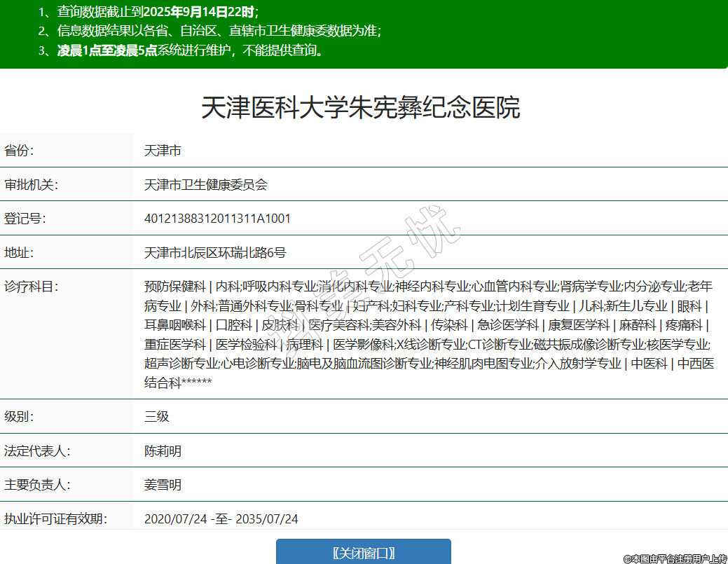 省份:天津市審批機關(guān):天津市衛(wèi)生健康委員會登記號:40121388312011311A1001地址:天津市北辰區(qū)環(huán)瑞北路6號診療科目:預(yù)防保健科 | 內(nèi)科;呼吸內(nèi)科專業(yè);消化內(nèi)科專業(yè);神經(jīng)內(nèi)科專業(yè);心血管內(nèi)科專業(yè);腎病學(xué)專業(yè);內(nèi)分泌專業(yè);老年病專業(yè) | 外科;普通外科專業(yè);骨科專業(yè) | 婦產(chǎn)科;婦科專業(yè);產(chǎn)科專業(yè);計劃生育專業(yè) | 兒科;新生兒專業(yè) | 眼科 | 耳鼻咽喉科 | 口腔科 | 皮膚科 | 醫(yī)療美容科;美容外科 | 傳染科 | 急診醫(yī)學(xué)科 | 康復(fù)醫(yī)學(xué)科 | 麻醉科 | 疼痛科 | 重癥醫(yī)學(xué)科 | 醫(yī)學(xué)檢驗科 | 病理科 | 醫(yī)學(xué)影像科;X線診斷專業(yè);CT診斷專業(yè);磁共振成像診斷專業(yè);核醫(yī)學(xué)專業(yè);超聲診斷專業(yè);心電診斷專業(yè);腦電及腦血流圖診斷專業(yè);神經(jīng)肌肉電圖專業(yè);介入放射學(xué)專業(yè) | 中醫(yī)科 | 中西醫(yī)結(jié)合科******級別:三級法定代表人:陳莉明主要負責(zé)人:姜雪明執(zhí)業(yè)許可證有效期:2020/07/24 -至- 2035/07/24 -