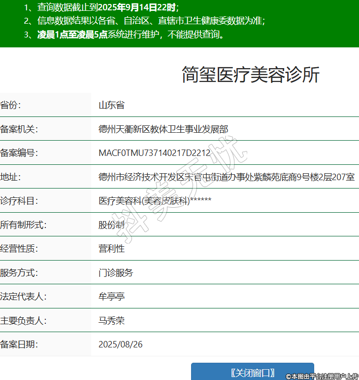 省份:山東省備案機關:德州天衢新區(qū)教體衛(wèi)生事業(yè)發(fā)展部備案編號:MACF0TMU737140217D2212地址:德州市經(jīng)濟技術開發(fā)區(qū)宋官屯街道辦事處紫麟苑底商9號樓2層207室診療科目:醫(yī)療美容科(美容皮膚科)******所有制形式:股份制經(jīng)營性質(zhì):營利性服務方式:門診服務法定代表人:牟亭亭主要負責人:馬秀榮備案日期:2025/08/26 -