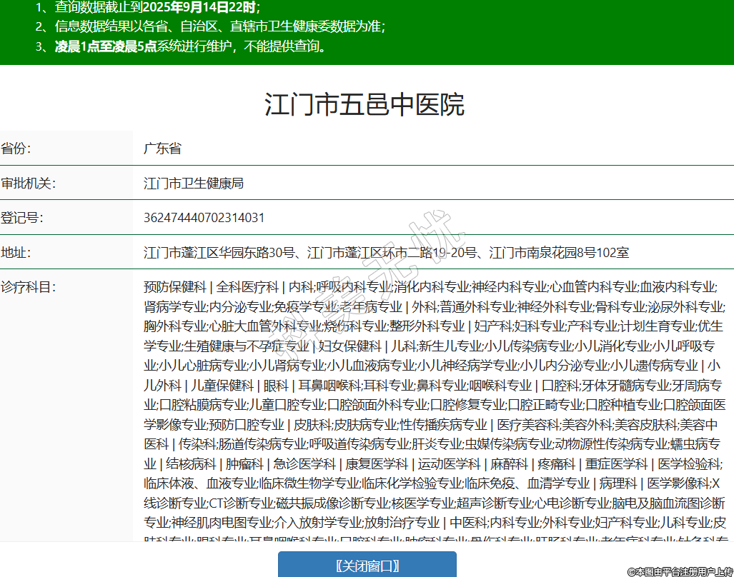 省份:廣東省審批機(jī)關(guān):江門(mén)市衛(wèi)生健康局登記號(hào):362474440702314031地址:江門(mén)市蓬江區(qū)華園東路30號(hào)、江門(mén)市蓬江區(qū)環(huán)市二路19-20號(hào)、江門(mén)市南泉花園8號(hào)102室診療科目:預(yù)防保健科 | 全科醫(yī)療科 | 內(nèi)科;呼吸內(nèi)科專(zhuān)業(yè);消化內(nèi)科專(zhuān)業(yè);神經(jīng)內(nèi)科專(zhuān)業(yè);心血管內(nèi)科專(zhuān)業(yè);血液內(nèi)科專(zhuān)業(yè);腎病學(xué)專(zhuān)業(yè);內(nèi)分泌專(zhuān)業(yè);免疫學(xué)專(zhuān)業(yè);老年病專(zhuān)業(yè) | 外科;普通外科專(zhuān)業(yè);神經(jīng)外科專(zhuān)業(yè);骨科專(zhuān)業(yè);泌尿外科專(zhuān)業(yè);胸外科專(zhuān)業(yè);心臟大血管外科專(zhuān)業(yè);燒傷科專(zhuān)業(yè);整形外科專(zhuān)業(yè) | 婦產(chǎn)科;婦科專(zhuān)業(yè);產(chǎn)科專(zhuān)業(yè);計(jì)劃生育專(zhuān)業(yè);優(yōu)生學(xué)專(zhuān)業(yè);生殖健康與不孕癥專(zhuān)業(yè) | 婦女保健科 | 兒科;新生兒專(zhuān)業(yè);小兒傳染病專(zhuān)業(yè);小兒消化專(zhuān)業(yè);小兒呼吸專(zhuān)業(yè);小兒心臟病專(zhuān)業(yè);小兒腎病專(zhuān)業(yè);小兒血液病專(zhuān)業(yè);小兒神經(jīng)病學(xué)專(zhuān)業(yè);小兒內(nèi)分泌專(zhuān)業(yè);小兒遺傳病專(zhuān)業(yè) | 小兒外科 | 兒童保健科 | 眼科 | 耳鼻咽喉科;耳科專(zhuān)業(yè);鼻科專(zhuān)業(yè);咽喉科專(zhuān)業(yè) | 口腔科;牙體牙髓病專(zhuān)業(yè);牙周病專(zhuān)業(yè);口腔粘膜病專(zhuān)業(yè);兒童口腔專(zhuān)業(yè);口腔頜面外科專(zhuān)業(yè);口腔修復(fù)專(zhuān)業(yè);口腔正畸專(zhuān)業(yè);口腔種植專(zhuān)業(yè);口腔頜面醫(yī)學(xué)影像專(zhuān)業(yè);預(yù)防口腔專(zhuān)業(yè) | 皮膚科;皮膚病專(zhuān)業(yè);性傳播疾病專(zhuān)業(yè) | 醫(yī)療美容科;美容外科;美容皮膚科;美容中醫(yī)科 | 傳染科;腸道傳染病專(zhuān)業(yè);呼吸道傳染病專(zhuān)業(yè);肝炎專(zhuān)業(yè);蟲(chóng)媒傳染病專(zhuān)業(yè);動(dòng)物源性傳染病專(zhuān)業(yè);蠕蟲(chóng)病專(zhuān)業(yè) | 結(jié)核病科 | 腫瘤科 | 急診醫(yī)學(xué)科 | 康復(fù)醫(yī)學(xué)科 | 運(yùn)動(dòng)醫(yī)學(xué)科 | 麻醉科 | 疼痛科 | 重癥醫(yī)學(xué)科 | 醫(yī)學(xué)檢驗(yàn)科;臨床體液、血液專(zhuān)業(yè);臨床微生物學(xué)專(zhuān)業(yè);臨床化學(xué)檢驗(yàn)專(zhuān)業(yè);臨床免疫、血清學(xué)專(zhuān)業(yè) | 病理科 | 醫(yī)學(xué)影像科;X線診斷專(zhuān)業(yè);CT診斷專(zhuān)業(yè);磁共振成像診斷專(zhuān)業(yè);核醫(yī)學(xué)專(zhuān)業(yè);超聲診斷專(zhuān)業(yè);心電診斷專(zhuān)業(yè);腦電及腦血流圖診斷專(zhuān)業(yè);神經(jīng)肌肉電圖專(zhuān)業(yè);介入放射學(xué)專(zhuān)業(yè);放射治療專(zhuān)業(yè) | 中醫(yī)科;內(nèi)科專(zhuān)業(yè);外科專(zhuān)業(yè);婦產(chǎn)科專(zhuān)業(yè);兒科專(zhuān)業(yè);皮膚科專(zhuān)業(yè);眼科專(zhuān)業(yè);耳鼻咽喉科專(zhuān)業(yè);口腔科專(zhuān)業(yè);腫瘤科專(zhuān)業(yè);骨傷科專(zhuān)業(yè);肛腸科專(zhuān)業(yè);老年病科專(zhuān)業(yè);針灸科專(zhuān)業(yè);推拿科專(zhuān)業(yè);康復(fù)醫(yī)學(xué)專(zhuān)業(yè);急診科專(zhuān)業(yè);預(yù)防保健科專(zhuān)業(yè) | 中西醫(yī)結(jié)合科******級(jí)別:三級(jí)法定代表人:章光華主要負(fù)責(zé)人:執(zhí)業(yè)許可證有效期:2025/08/05 -至- 2040/08/04 -