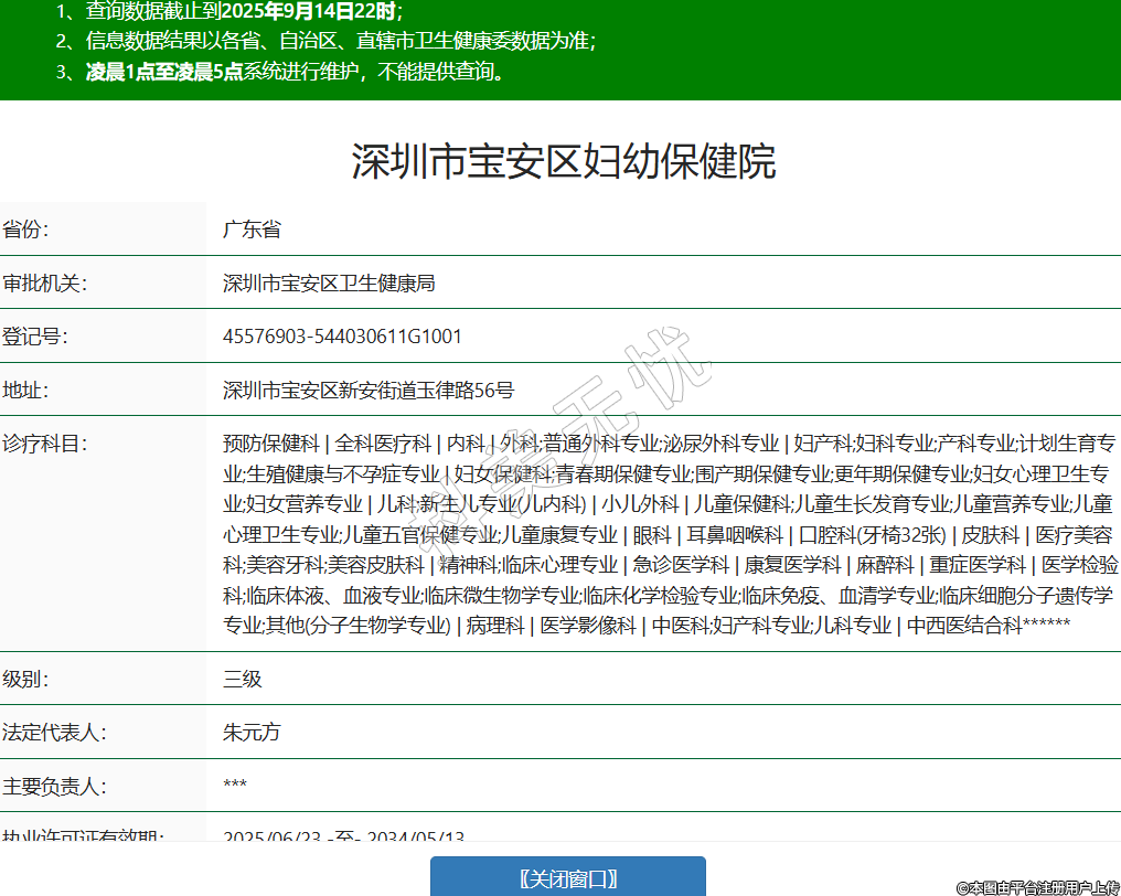 省份:廣東省審批機(jī)關(guān):深圳市寶安區(qū)衛(wèi)生健康局登記號:45576903-544030611G1001地址:深圳市寶安區(qū)新安街道玉律路56號診療科目:預(yù)防保健科 | 全科醫(yī)療科 | 內(nèi)科 | 外科;普通外科專業(yè);泌尿外科專業(yè) | 婦產(chǎn)科;婦科專業(yè);產(chǎn)科專業(yè);計劃生育專業(yè);生殖健康與不孕癥專業(yè) | 婦女保健科;青春期保健專業(yè);圍產(chǎn)期保健專業(yè);更年期保健專業(yè);婦女心理衛(wèi)生專業(yè);婦女營養(yǎng)專業(yè) | 兒科;新生兒專業(yè)(兒內(nèi)科) | 小兒外科 | 兒童保健科;兒童生長發(fā)育專業(yè);兒童營養(yǎng)專業(yè);兒童心理衛(wèi)生專業(yè);兒童五官保健專業(yè);兒童康復(fù)專業(yè) | 眼科 | 耳鼻咽喉科 | 口腔科(牙椅32張) | 皮膚科 | 醫(yī)療美容科;美容牙科;美容皮膚科 | 精神科;臨床心理專業(yè) | 急診醫(yī)學(xué)科 | 康復(fù)醫(yī)學(xué)科 | 麻醉科 | 重癥醫(yī)學(xué)科 | 醫(yī)學(xué)檢驗科;臨床體液、血液專業(yè);臨床微生物學(xué)專業(yè);臨床化學(xué)檢驗專業(yè);臨床免疫、血清學(xué)專業(yè);臨床細(xì)胞分子遺傳學(xué)專業(yè);其他(分子生物學(xué)專業(yè)) | 病理科 | 醫(yī)學(xué)影像科 | 中醫(yī)科;婦產(chǎn)科專業(yè);兒科專業(yè) | 中西醫(yī)結(jié)合科******級別:三級法定代表人:朱元方主要負(fù)責(zé)人:***執(zhí)業(yè)許可證有效期:2025/06/23 -至- 2034/05/13 -