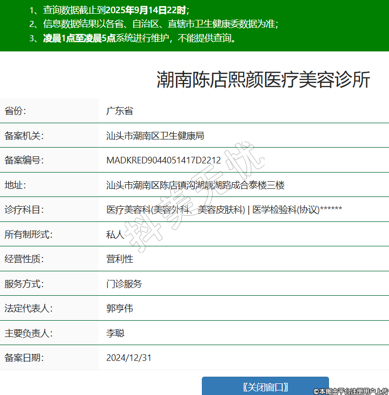 省份:廣東省備案機關(guān):汕頭市潮南區(qū)衛(wèi)生健康局備案編號:MADKRED9044051417D2212地址:汕頭市潮南區(qū)陳店鎮(zhèn)溝湖靚湖路成合泰樓三樓診療科目:醫(yī)療美容科(美容外科、美容皮膚科) | 醫(yī)學(xué)檢驗科(協(xié)議)******所有制形式:私人經(jīng)營性質(zhì):營利性服務(wù)方式:門診服務(wù)法定代表人:郭亨偉主要負責(zé)人:李聰備案日期:2024/12/31 -