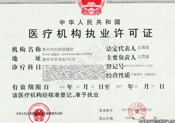 發(fā)證機關:泉州市衛(wèi)生健康委員會