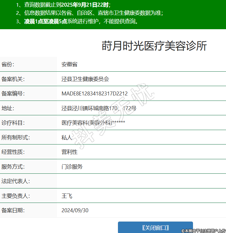省份:安徽省備案機(jī)關(guān):涇縣衛(wèi)生健康委員會(huì)備案編號(hào):MADE8E12834182317D2212地址:涇縣涇川鎮(zhèn)環(huán)城南路170、172號(hào)診療科目:醫(yī)療美容科(美容外科)******所有制形式:私人經(jīng)營(yíng)性質(zhì):營(yíng)利性服務(wù)方式:門診服務(wù)法定代表人:主要負(fù)責(zé)人:王飛備案日期:2024/09/30 -