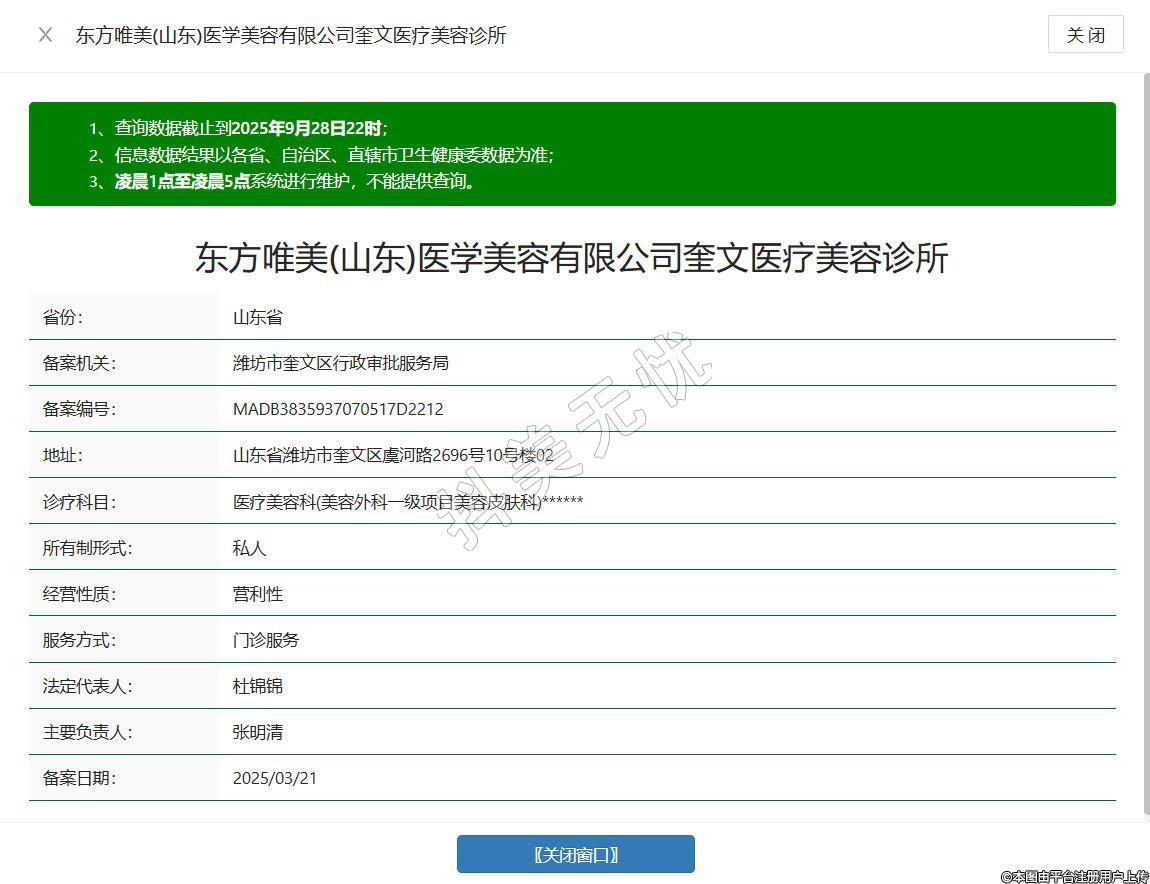 東方唯美(山東)醫(yī)學(xué)美容有限公司奎文醫(yī)療美容診所