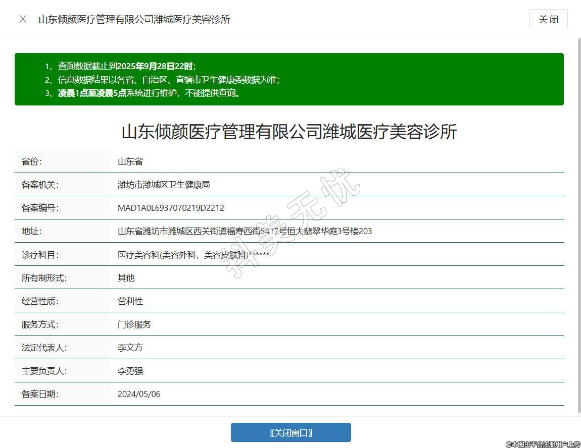 山東傾顏醫(yī)療管理有限公司濰城醫(yī)療美容診所