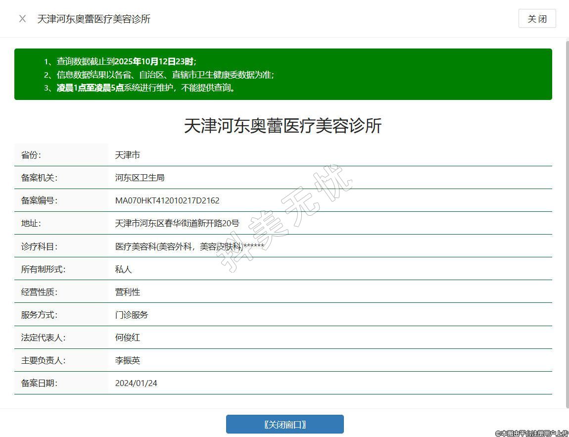 天津奧蕾醫(yī)療美容診所成立于2022年,位于天津市河東區(qū)春華街道新開路20號,是經(jīng)天津市河東區(qū)衛(wèi)生健康委及市場監(jiān)督管理局登記注冊的正規(guī)醫(yī)療美容機構(gòu),匯聚了從業(yè)多年的專業(yè)醫(yī)師團隊,開展整形美容、注射美容、皮膚美容、抗衰治療等服務(wù),配備合規(guī)醫(yī)療設(shè)備,遵循規(guī)范服務(wù)標準,以 “專業(yè)保障安全” 為原則,為顧客打造便捷、安心的診療體驗。
