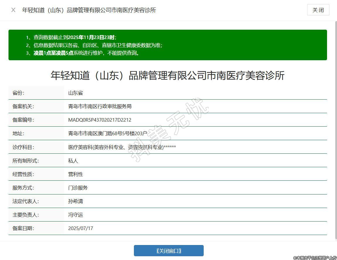 年輕知道(山東)品牌管理有限公司市南醫(yī)療美容診所
