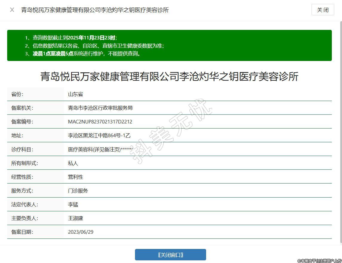 青島悅民萬家健康管理有限公司李滄灼華之鑰醫(yī)療美容診所