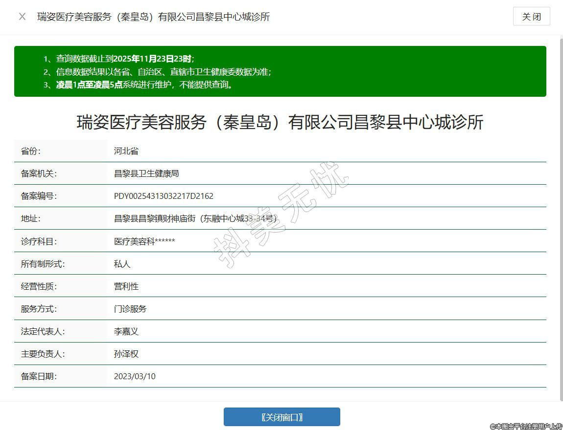 瑞姿醫(yī)療美容服務(wù)(秦皇島)有限公司昌黎縣中心城診所