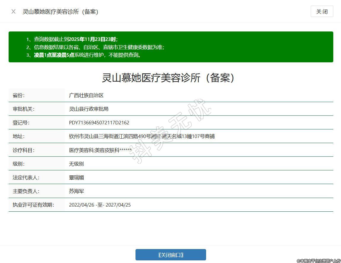 靈山慕她醫(yī)療美容診所成立于2021年,位于廣西省欽州市靈山縣三海街道江濱四路490號湘桂·盛天名城13幢107號商鋪,是經(jīng)合規(guī)審批設(shè)立的專業(yè)醫(yī)美機構(gòu),堅守合法經(jīng)營、誠信服務(wù)的核心準則,匯聚具備相應(yīng)專業(yè)資格與執(zhí)業(yè)證書的醫(yī)護團隊,診療范圍涵蓋合規(guī)批準的醫(yī)療美容項目,注重醫(yī)療安全與環(huán)境規(guī)范,醫(yī)療設(shè)備與藥品均符合國家標準,為顧客提供規(guī)范、貼心的醫(yī)美服務(wù)。