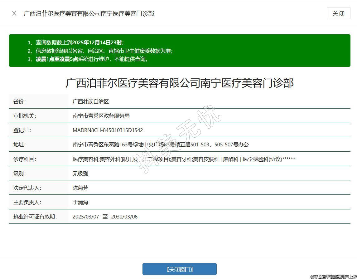 廣西泊菲爾醫(yī)療美容有限公司南寧醫(yī)療美容門診部