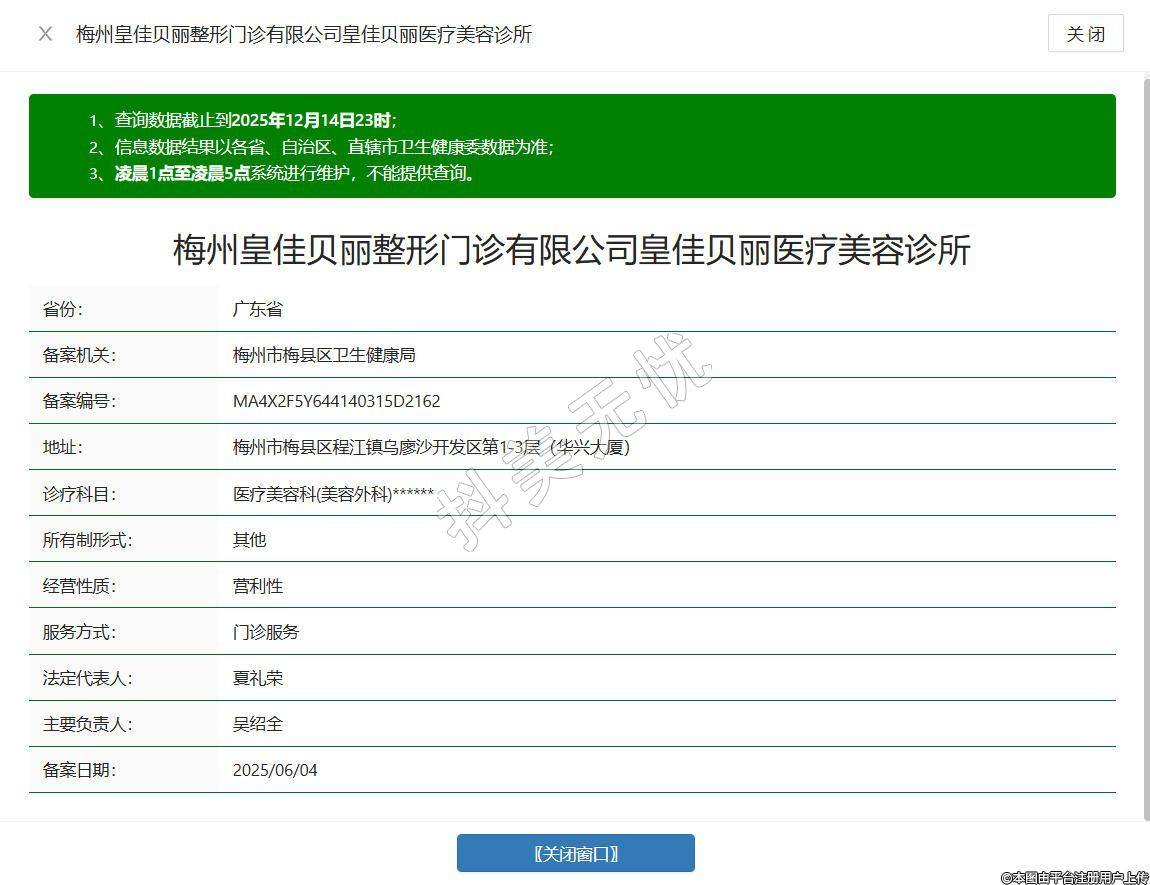 梅州皇佳貝麗整形門(mén)診有限公司皇佳貝麗醫(yī)療美容診所